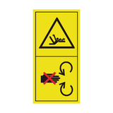 Product Name: Danger Of Rotating Shaft - Wait Until Parts Have Stopped Moving Sticker Additional Product Description: This sticker should be used to inform the user there is a danger of the rotating shaft....