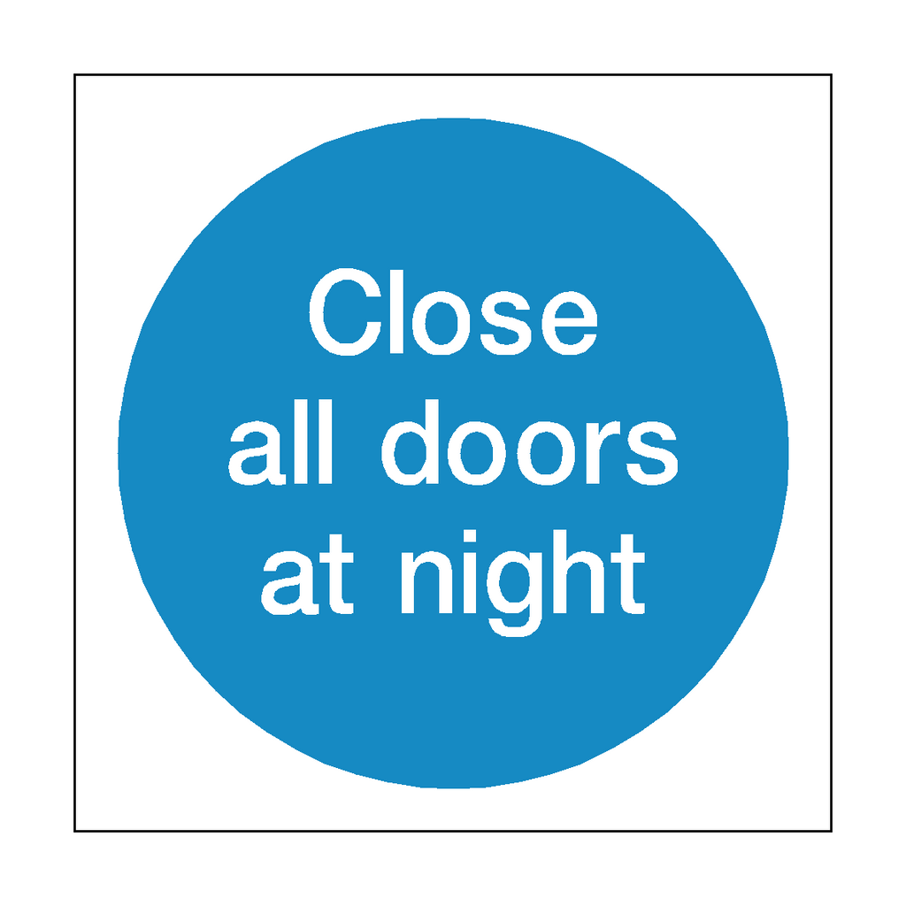 Close All Doors At Night Sign | Safety-Label.co.uk