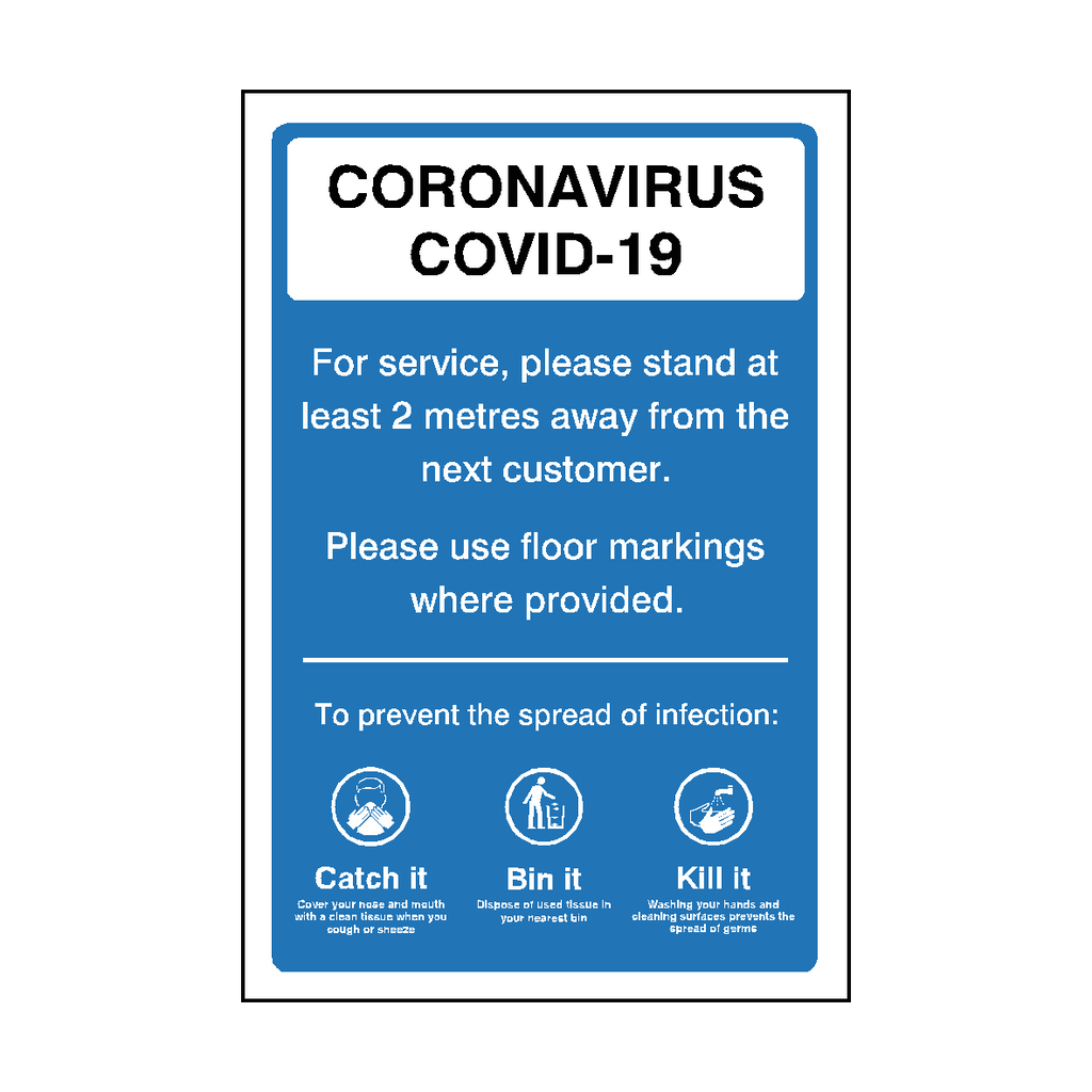 Additional Product Description: This sign should be used to provide instructions about the 2 metre social distancing rules to prevent the spread of the Coronavirus.