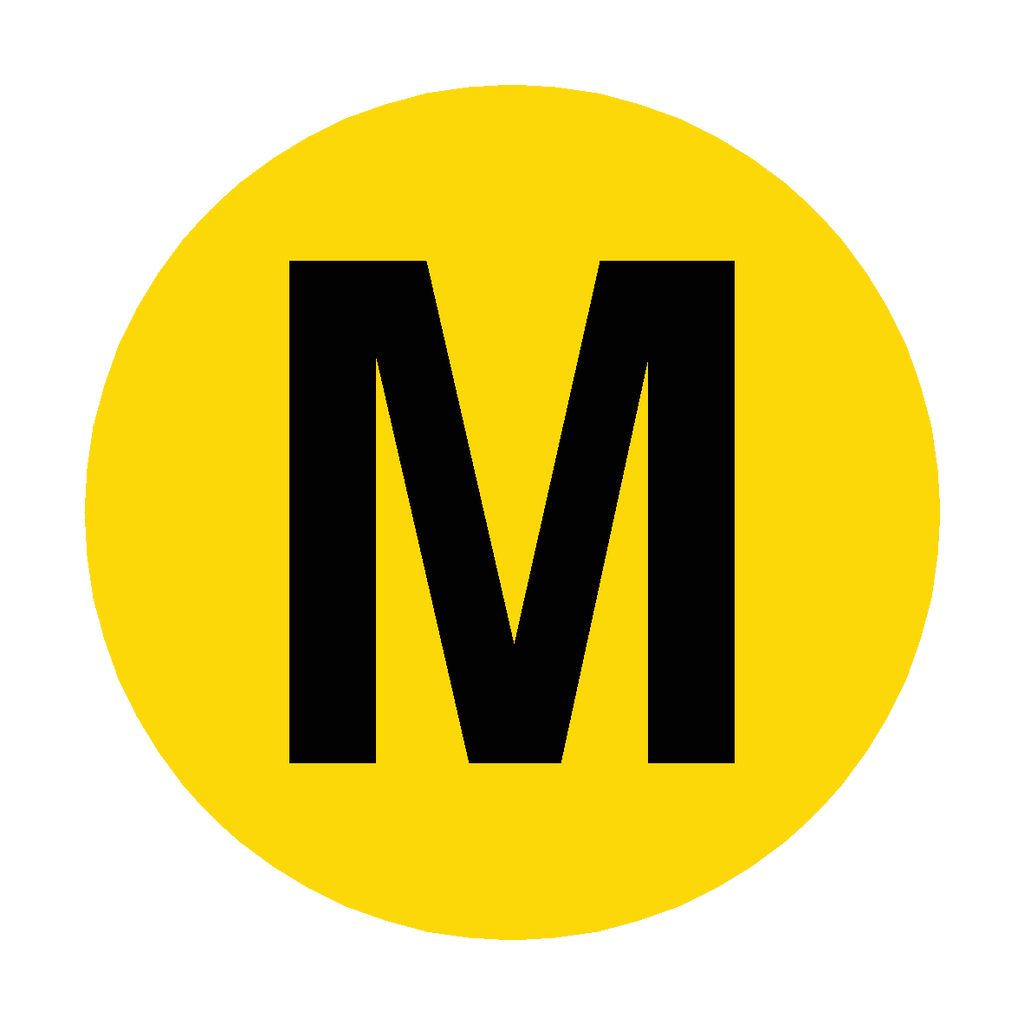 Additional Product Description: Letter M - Black Letter / Yellow Background Floor Identification Markers For Warehouse Aisles, Bays or other Warehouse Floor Areas.