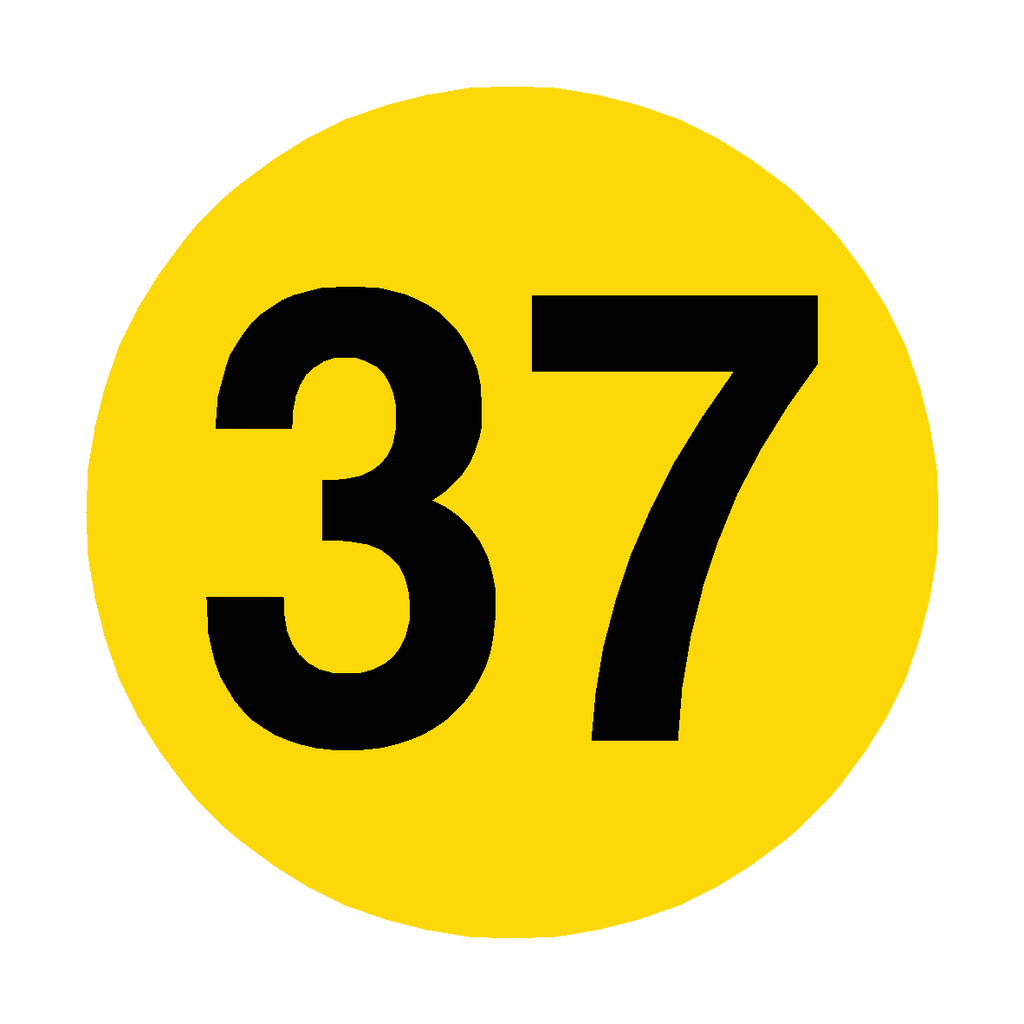 Additional Product Description: Number 37 - Black Number / Yellow Background Floor Identification Markers For Warehouse Aisles, Bays or other Warehouse Floor Areas.