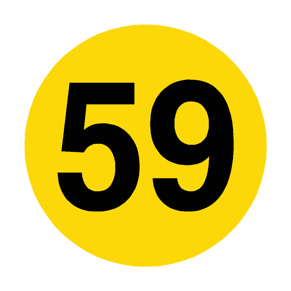 Additional Product Description: Number 59 - Black Number / Yellow Background Floor Identification Markers For Warehouse Aisles, Bays or other Warehouse Floor Areas.