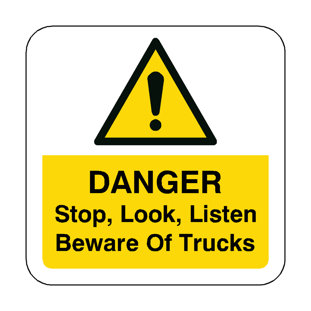 Additional Product Description: This stop, look, listen, beware of trucks floor sticker should be used in an area where trucks or forklift trucks operate.